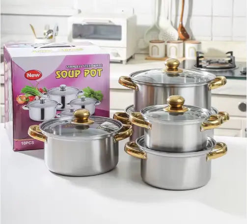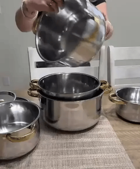 Las ollas de del set de cocina x 13 están fabricadas en acero inoxidable de alta calidad, libre de tóxicos y seguro para toda la familia.